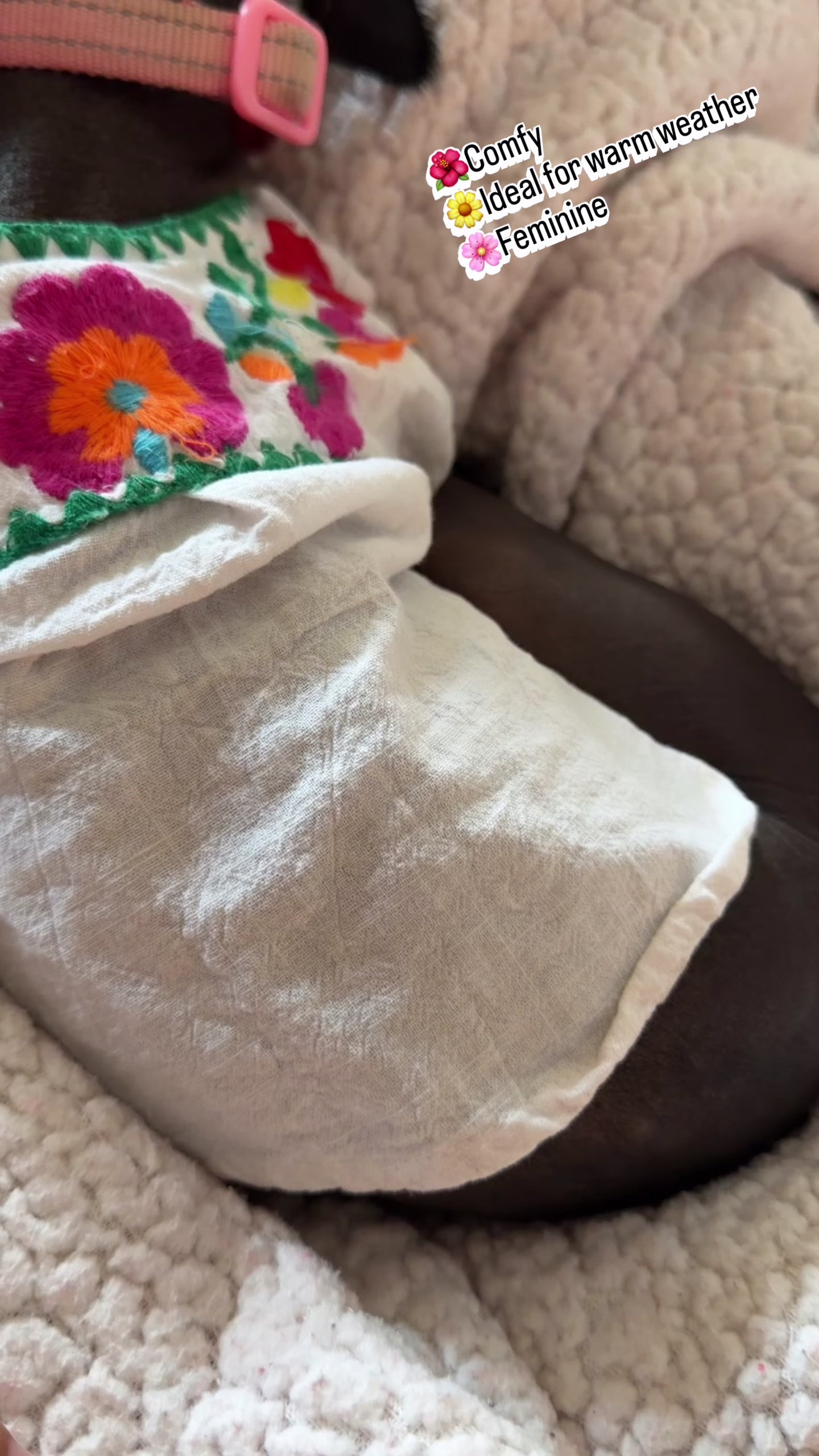 These colorful, handmade embroidered tops feature elastic sleeves for easy wear. Perfect for any occasion—fiestas, walks, or family outings—these blouses keep your furry friend cool and stylish while protecting their skin. Ideal for pets of all sizes, they're a must-have for every dog’s closet! P