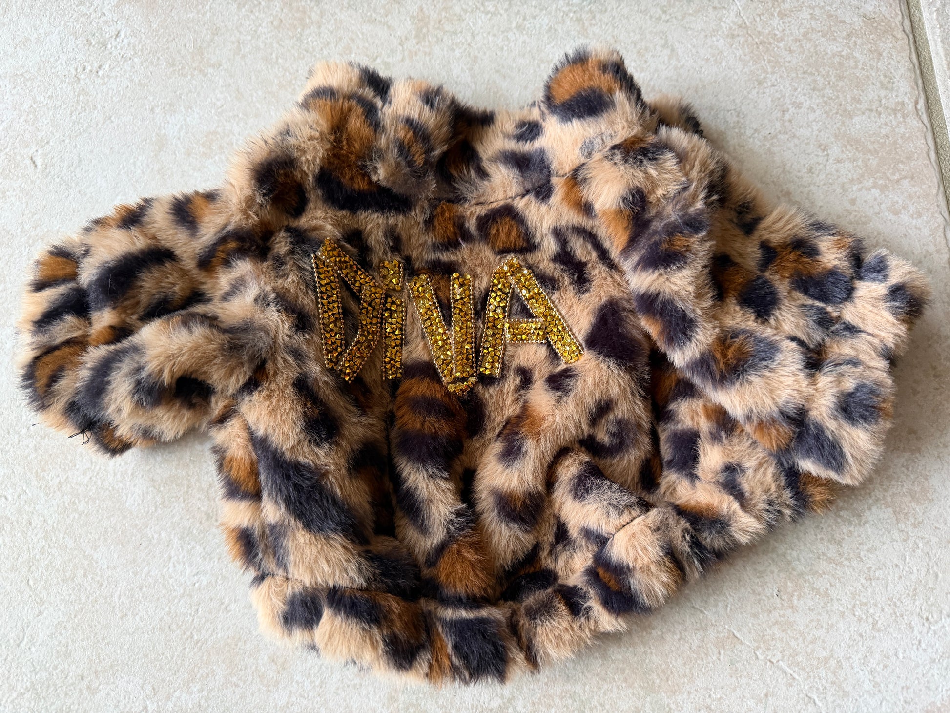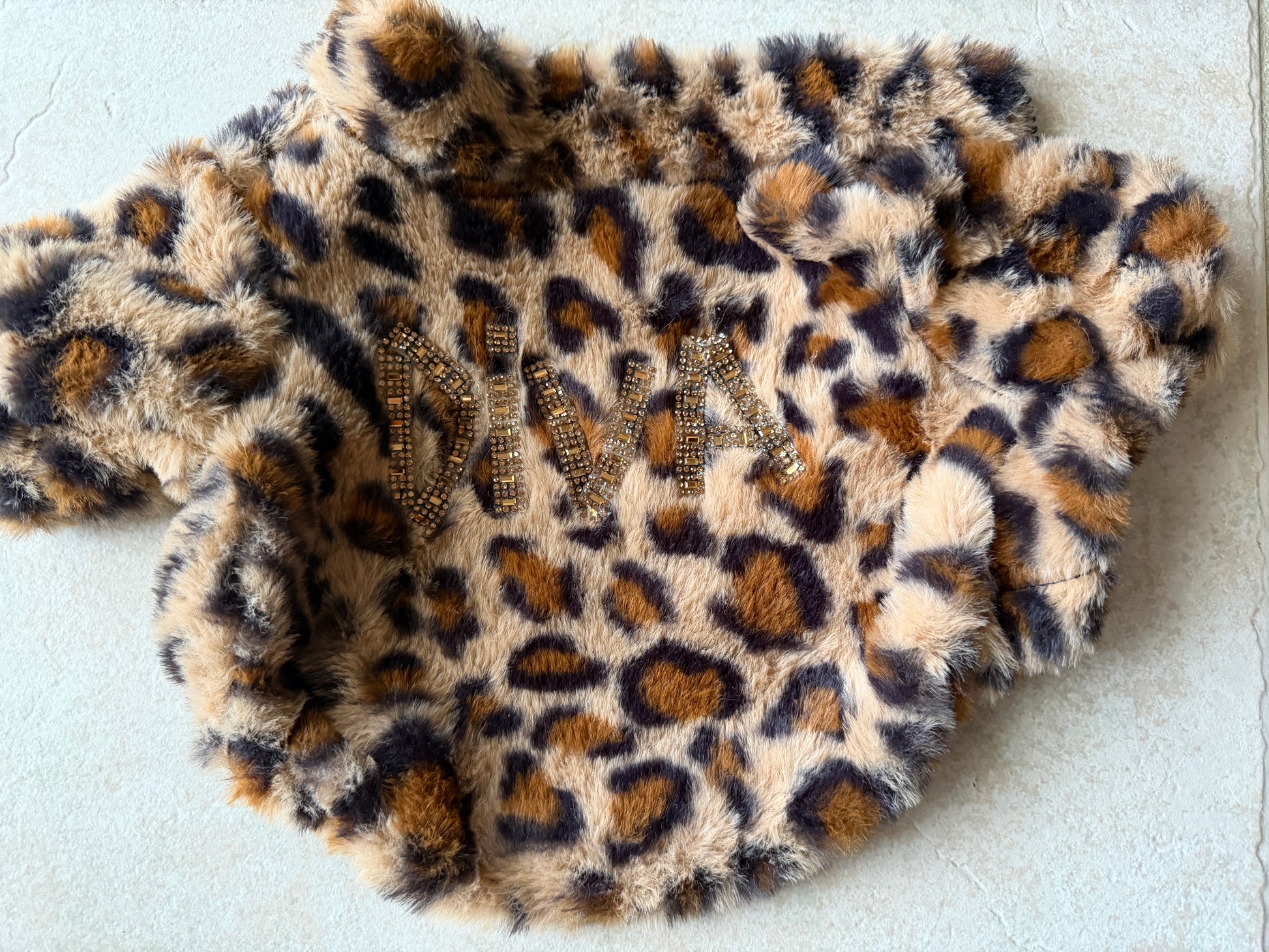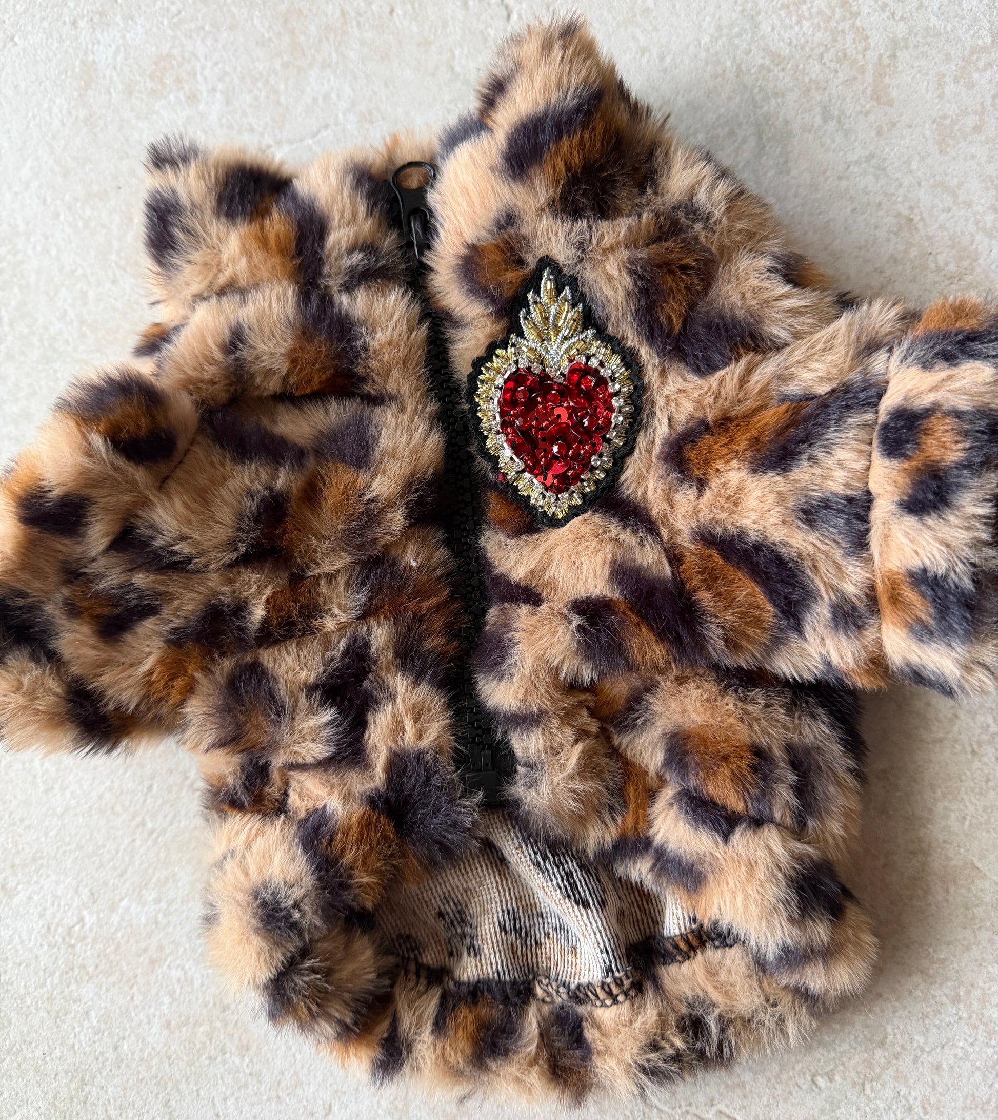 This fabulous jacket features a sequin heart at the front, symbolizing the heart of your dog and how we pour our hearts into every piece we create. The striking leopard print and "DIVA" on the back add a touch of fierce elegance, ensuring your furry friend stands out during walks.